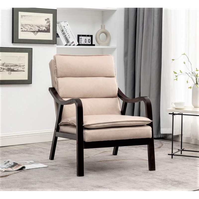 - STURDY & DURABLE - Built to last, our beige accent chair is constructed with a solid wood frame; It can withstand everyday use and retain its attractive appearance for years to come