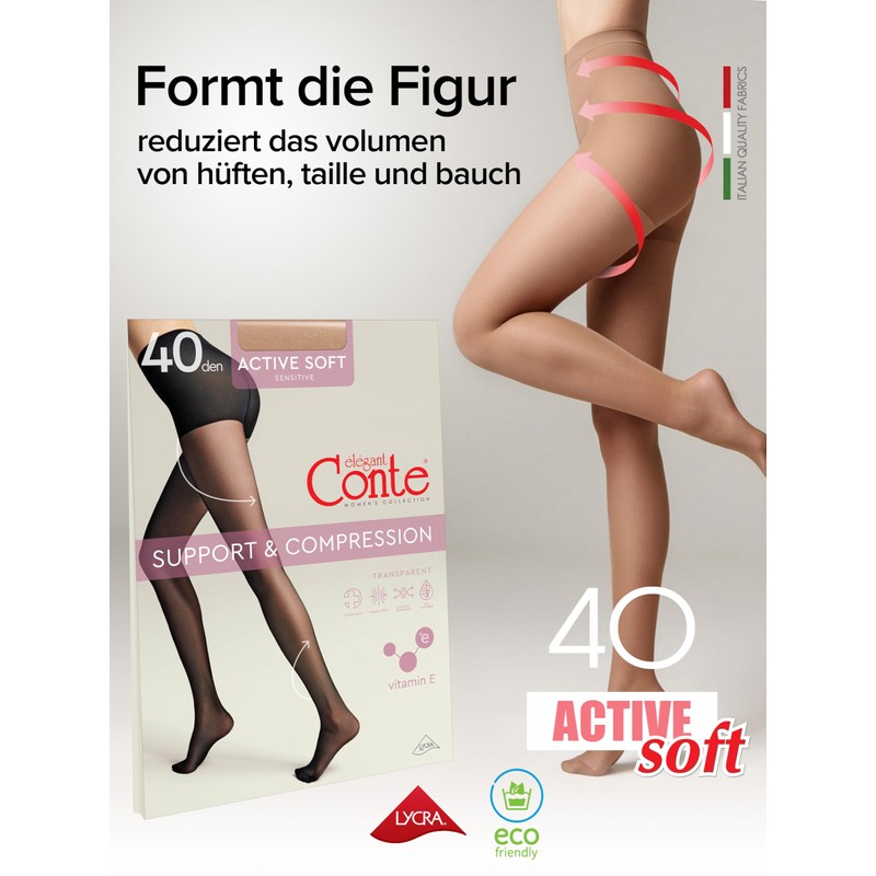 Conte elegant Conte elegant Damenstrumpfhose f1r empfindliche Haut mit Vitamin E - ACTIVE SOFT Lycra 40 DEN - Modellierende Wirkung Damen Feinstrumpfhose Strumpfhose - Einfarbig - Farbe Natural Gr??e 4