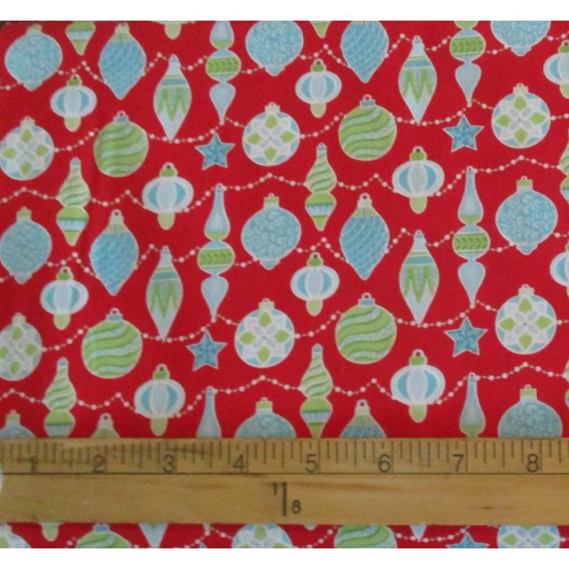 Contempo Christmas Ornament Fabric 100% Cotton By the Yard Red Green Blue Retro