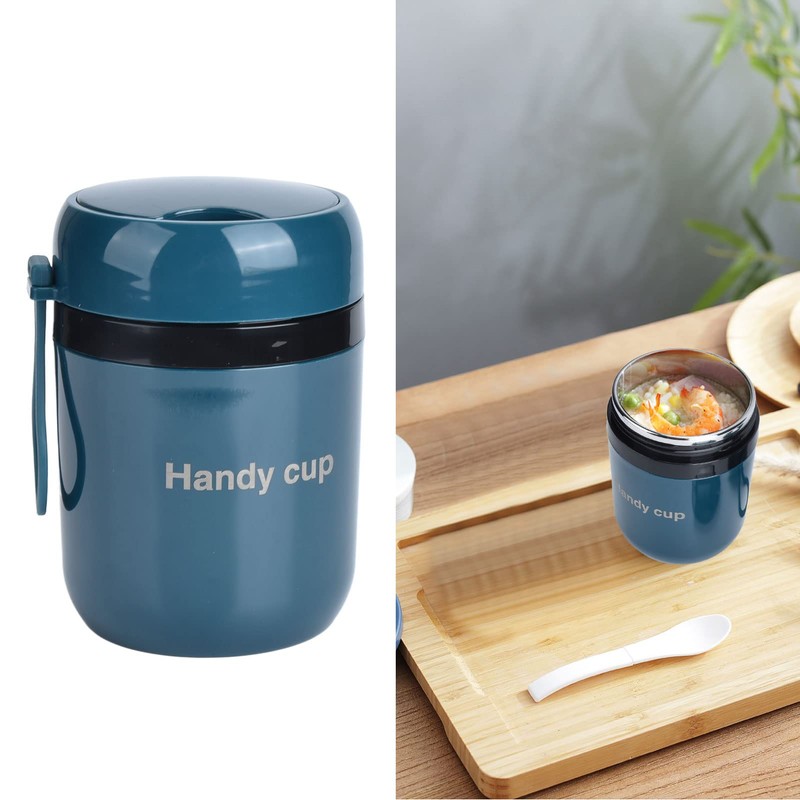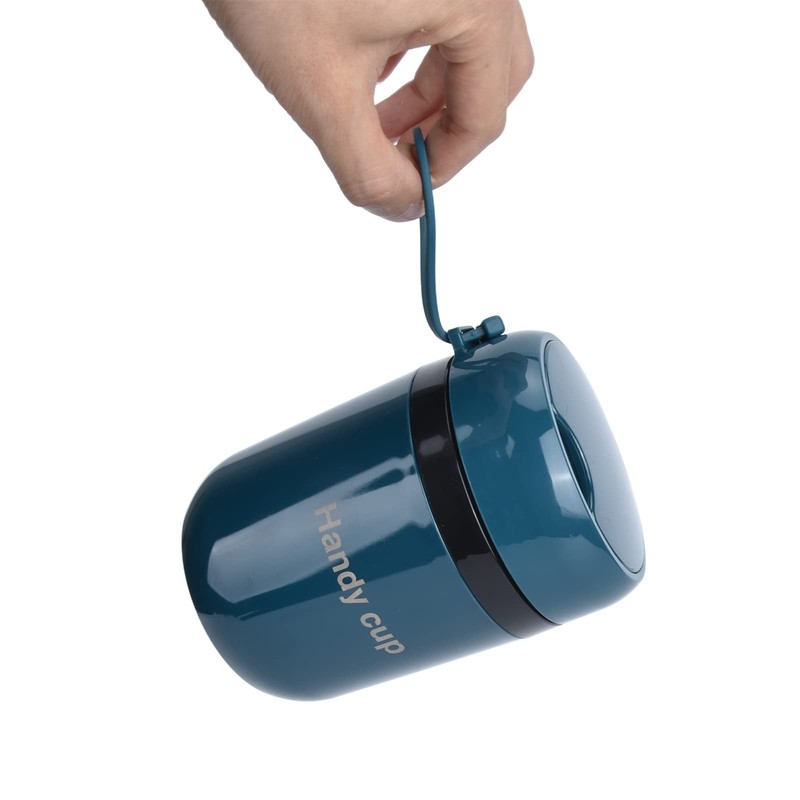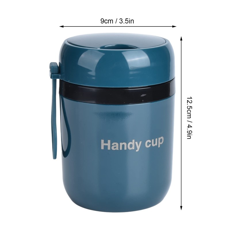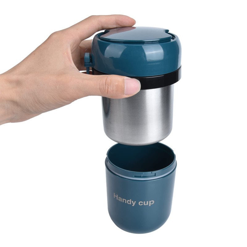 - Cómoda cuchara plegable: dentro del recipiente, encontrará una cuchara plegable, lo que facilita disfrutar de sus comidas sin necesidad de utensilios adicionales. El contenedor también cuenta con una parte superior con un asa, lo que permite un fácil transporte. La amplia apertura del recipiente facilita el llenado, la alimentación y la limpieza