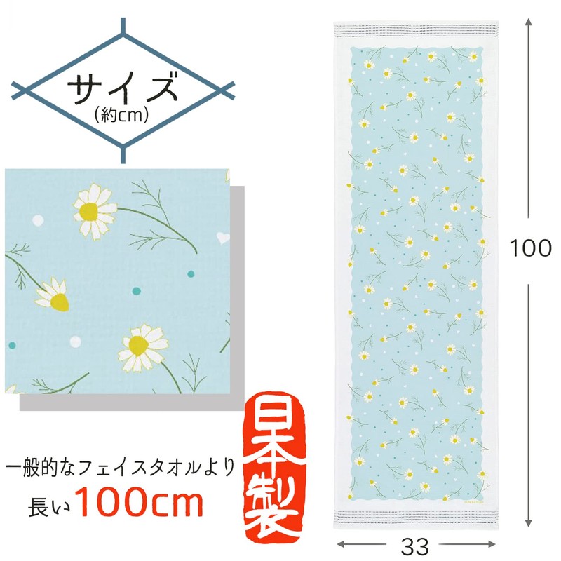 Contex 58491-001 Face Towel, Cloth Go-Yomi 2023, Chamomile, Blue, Approx. 13.0 x 39.4 inches (33 x 100 cm)