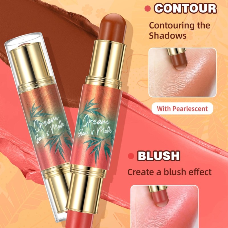 - IDEAL GIFT:If your friends and family would like to improve their makeup and enhance facial definition, this cream blush & highlighter bronzer pen is also a good choice as a gift.Contour stick can make your makeup look different.The blush highlighter stick has double-headed design is very special. Contour powder can be carried around and you are sure to like powder blush