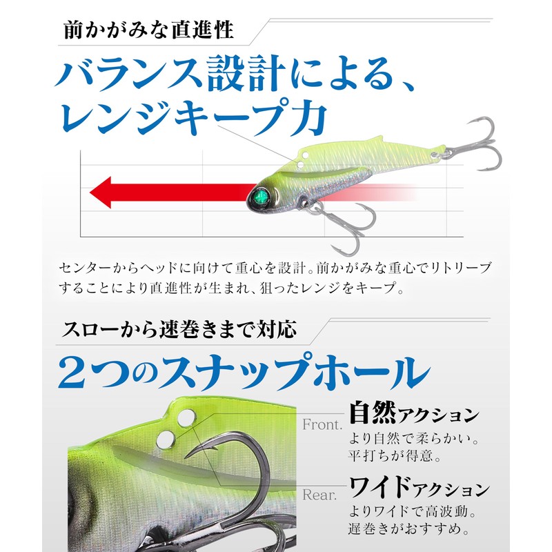 - Specifications: 0.5 oz (14 g) 2.3 inches (58 mm) / Forward Gravity Center / Equipped with Treble Hooks