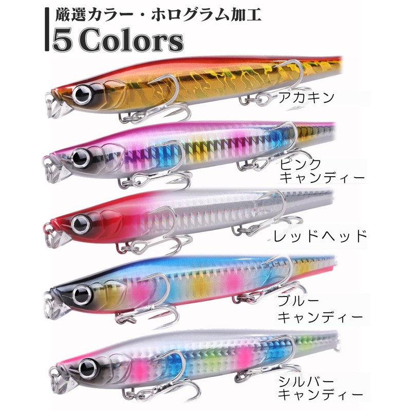 Contyu Sinking Pencil Set, 4.9 inches (125 mm), 1.6 oz (45 g), Lip Included, Sea Bass, Flounder, Shin Pen (4.9 inches (125 mm/45 g), Color A' (Set of 5)
