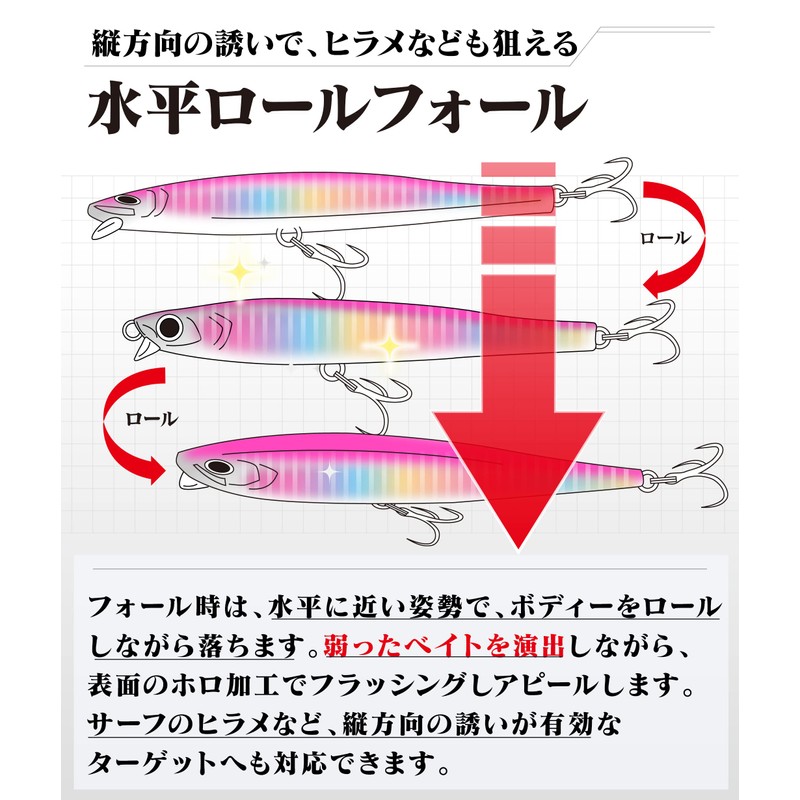 - Natural Swim: Natural action in the Jurayura and S shape to create a natural bait. / Effective for targets where jigs and minnows