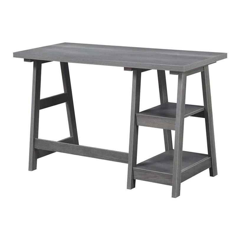 Convenience Concepts Designs2Go Trestle Desk with Shelves, 47", Charcoal Gray