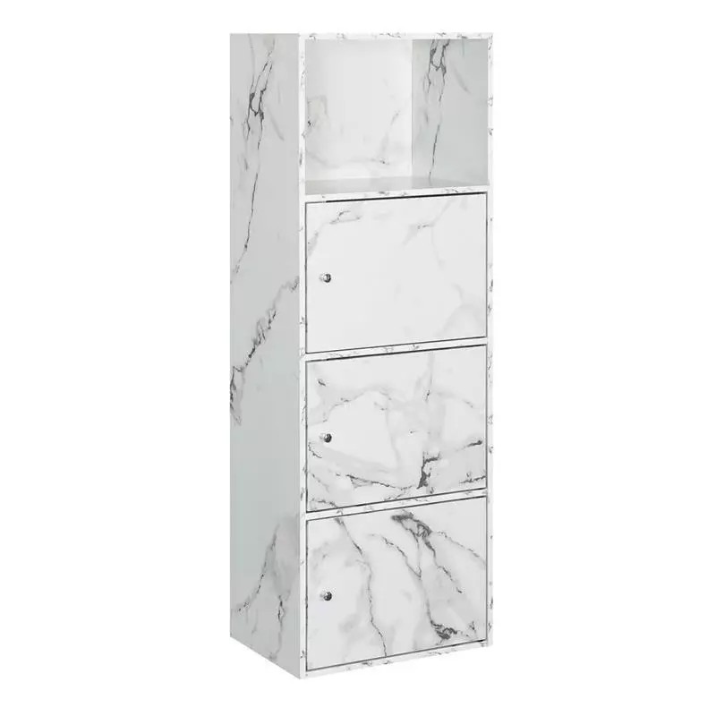 Convenience Concepts Xtra Storage 3 Door Cabinet in White Faux Marble Wood Finish