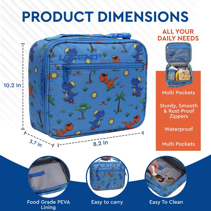 COOBUG Kids Lunch Bag Insulated Cooler - Insulated Cooler for Keeping Meals Fresh & On-The-Go - Leak-Proof, Spacious, and Durable Lunchbag - Perfect for School, Picnics, and Travel - Blue Dinosaur