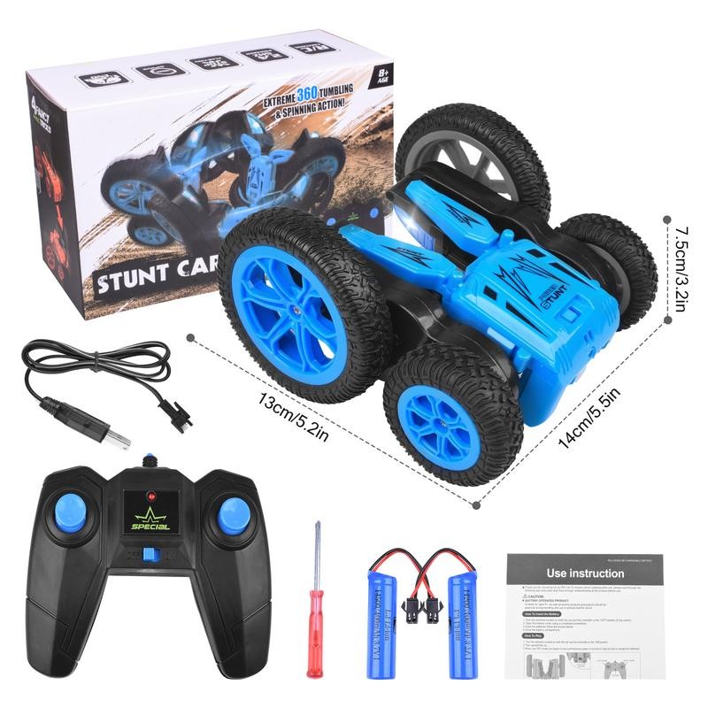 Shockproof and Off-Road:the anti-crash stunt RC car is durable and lightweight. Strong grip for climbing up to 45°. Durable wheels and well-constructed anti-slip tyres ensure high speed and stable performance on grassland, sand, gravel, snow and concrete road.