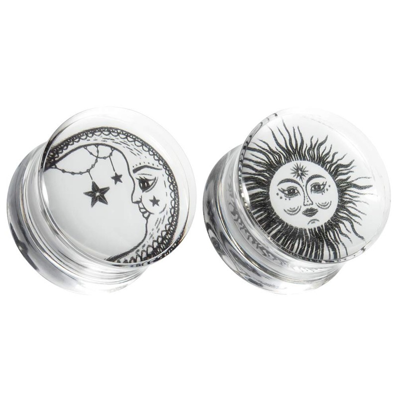 COOEAR Ear Gauges Piercing Saddle Plugs, Double Flared Tunnels, Acrylic Sun and Moon Logo Earrings Matched Stretchers.