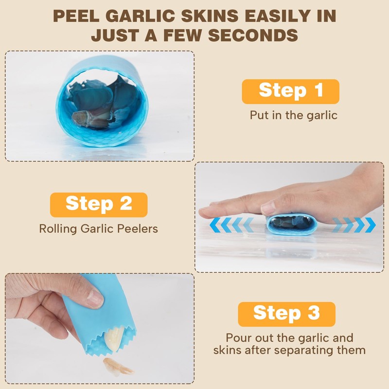 - 【Stainless Steel Garlic Press Rocker with Garlic Peeler】 This garlic crusher combines an innovative rocker design with a convenient garlic peeler, making garlic prep easier than ever. Simply press the cloves to mince and peel the skins in seconds. This garlic tool boosts your cooking efficiency by saving time and effort when preparing garlic for your dishes.