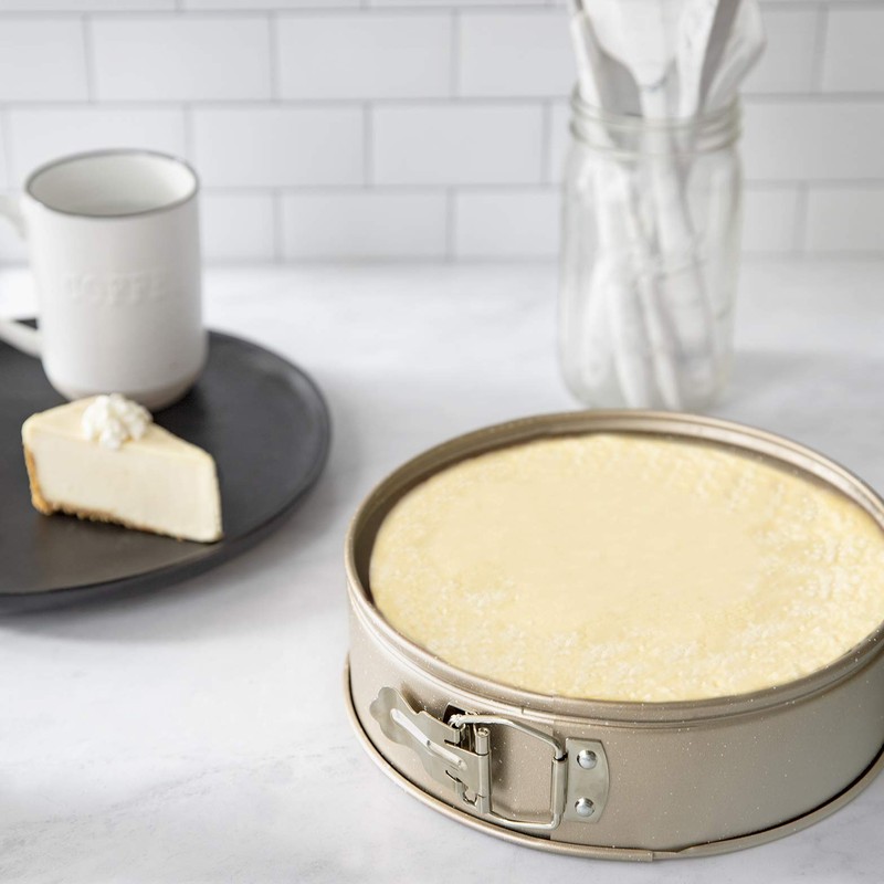 - SET INCLUDES – This round springform pan is 9 inches and has the springform latch for easy baking. The pan has a glass base.