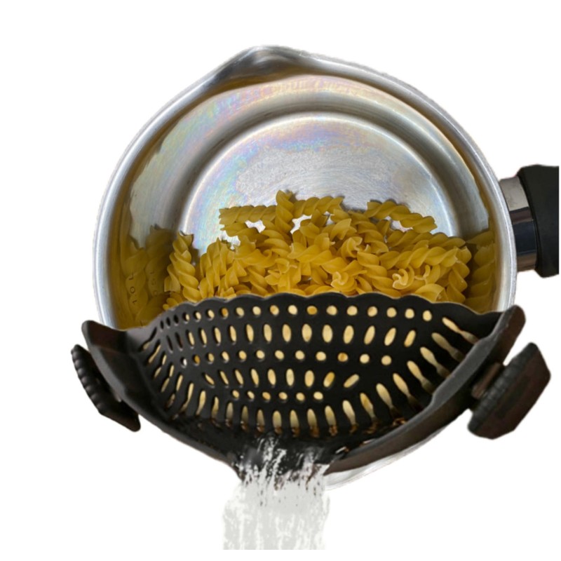 Cooking Tools for Kitchen/A Clip-on Silicone Strainer Purple Pots and Pans Set/Unique Gifts for Cooks/Gifts for Mom Useful/Cooking Gifts for Women (black)