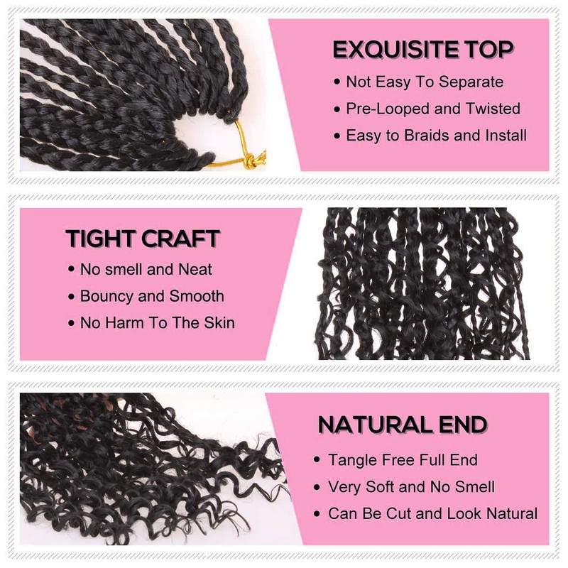 - 🌸Hair Style -- Boho Box Braid Crochet Hair Pre looped,Goddess Box Braids curly ends,Braiding hair,Box Braids,Crochet hair for Black Women,can show your personality and charming,bring you a unique hair style experience!