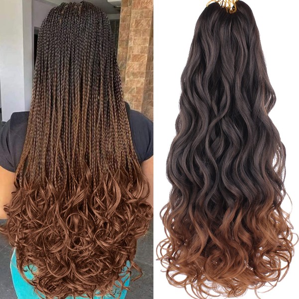 COOKOO 9 Pack Pre Stretched French Curls Braiding Hair 22 Inch 75g/Pack Ombre Brown Goddess Crochet Hair Loose Wavy Crochet Braids Hair with Curly Ends Wavy Synthetic Braiding Hair Extensions T30#