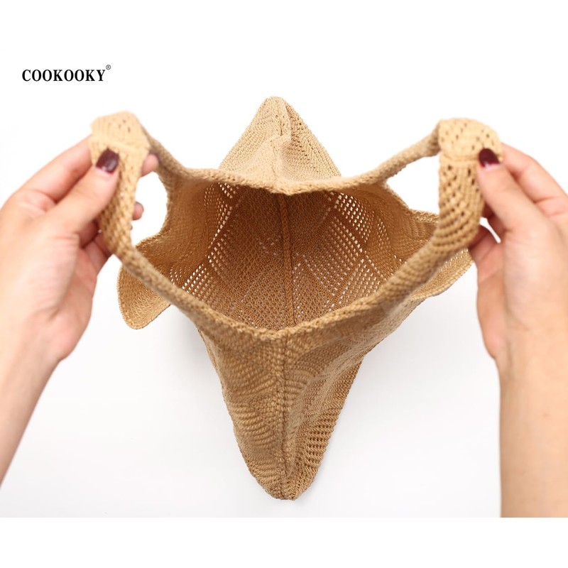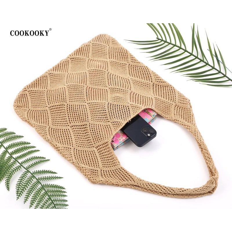 COOKOOKY Crochet Beach Tote bag Summer Beach Bag for Women Aesthetic Mesh Tote Bag Hippie Bag Knit Bag (D-Khaki, Medium)