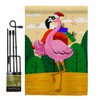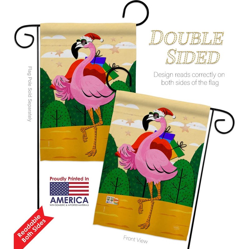 Cool Christmas Flamingo Garden Flag Set with Stand Animals Bird Hummingbird Cardinal Peacock Springtime Natural Wildlife Small Decorative Gift Yard House Banner Double-Sided Made In USA 13 X 18.5