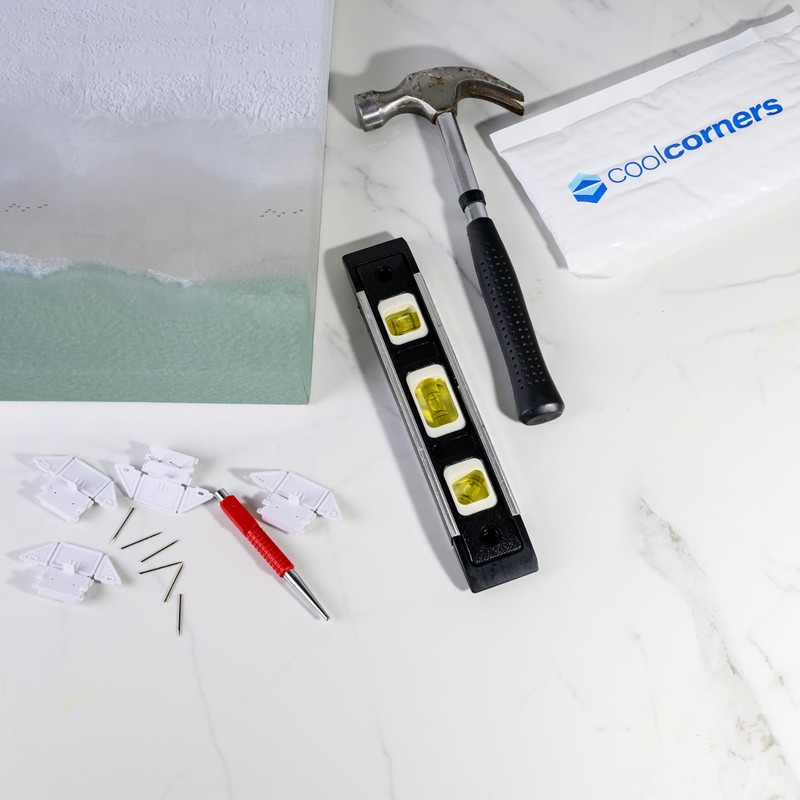 COOL CORNERS 4 Brackets, Nails, Punch - Large and Small Picture Hanging System