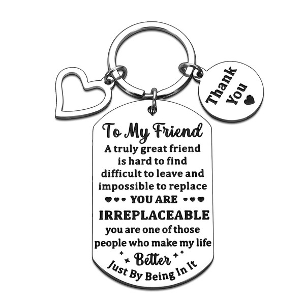 - 【Best friend gifts for women men】to my friend; a truly great friend is hard to find, difficult to leave and impossible to replace. You are irreplaceable. You are one of those people who make my life better just by being in it. It is nice gifts for friends, bestie, and colleagues to show them love and tell them how important they are to you. Best friend gifts for women, best friend birthday gifts, best friend gifts, friend birthday gifts for women, gifts for friends women, friend gifts for women.