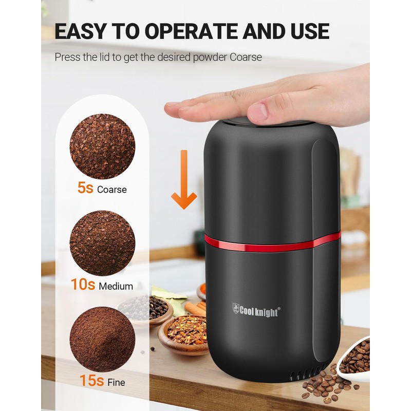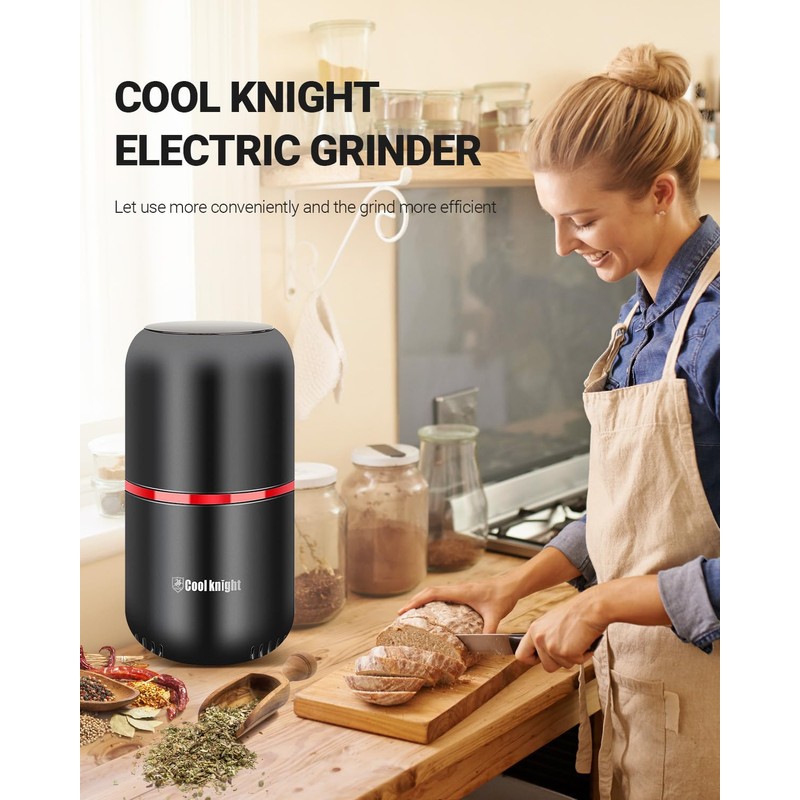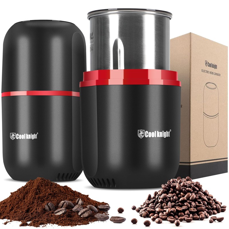 COOL KNIGHT KaffeemüHle Elektrisch, GewüRzmüHle, Elektrische KaffeemüHle Mit 304-Edelstahlklinge, Geeignet FüR Kaffeebohnen, GewüRze, KräUter, Getreide, NüSse.(Schwarz)