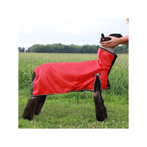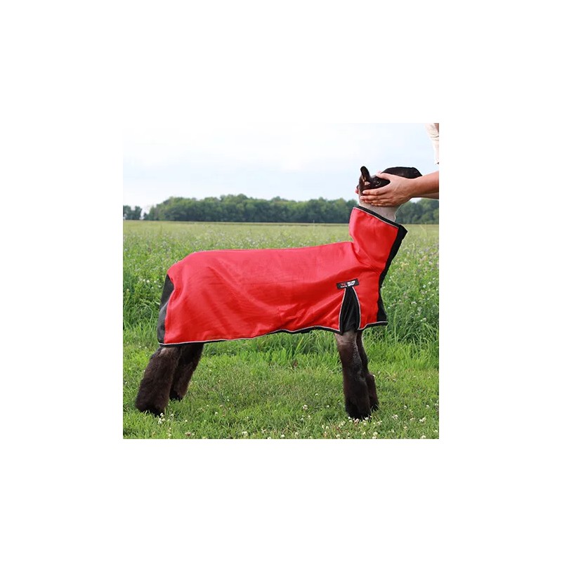 The Cool Tech Blankets are designed with innovative cooling technology. The material is designed to keep the lamb or goat cool with breathable interlocking material. The material is highly rated for durability and aids in keeping the lamb free of debris. It also acts as a protective shield, equipped with a anti-mosquito barrier with anti-UV protection. The blankets have improved sizing that allows for a up to date comfort fit. Newly added performance features consist of the Spandex Pleat Designed to allow increased movement when exercising, and also the Spandex Front Column Designed to allow for a larger opening when putting on the blanket over the head. Machine Washable Innovative Cooling Technology Medium- (115lbs – 150lbs) – 32” Long, 17” Deep, 12” Neck