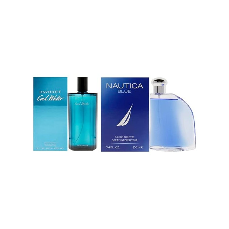 Cool Water and Nautica Blue Kit for Men - 2 Pc Kit 6.7oz EDT Spray, 3.4 oz EDT Spray