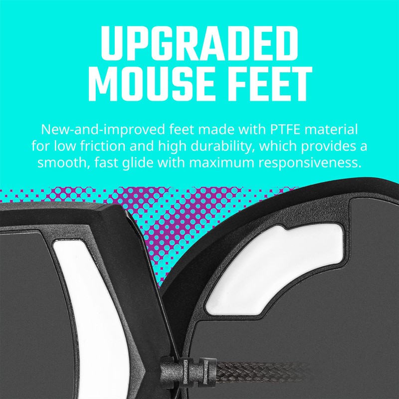 - Upgraded Mouse Feet: New-and-improved feet made with PTFE material for low friction and high durability, which provides a smooth, fast glide with maximum responsiveness