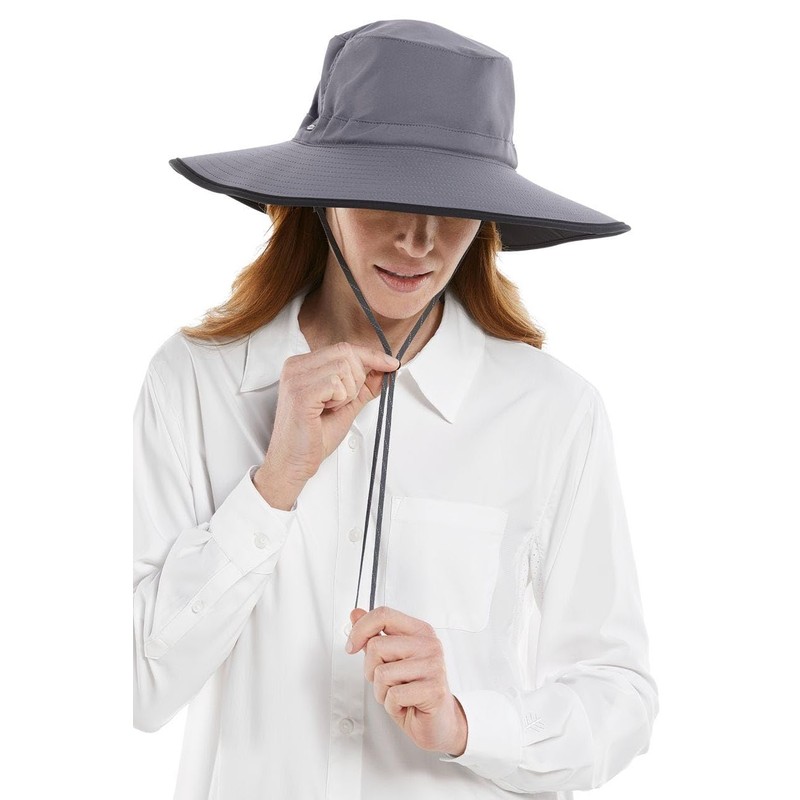 Coolibar UPF 50+ Women's Etta Shapeable Sun Catcher Hat - Sun Protective (One Size- Carbon/Black Travel Medallion)