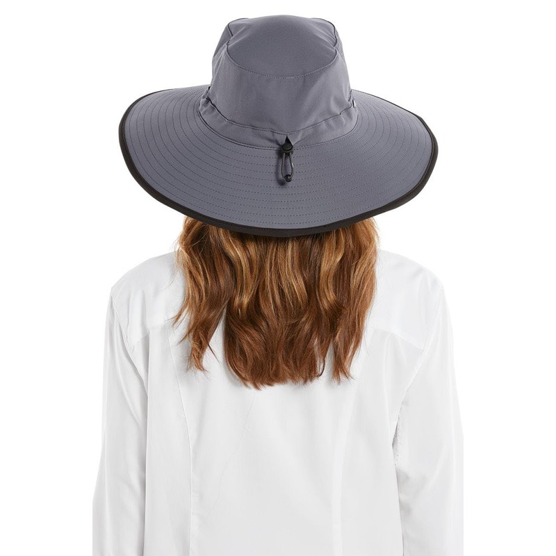 - FEATURES: Beautiful pattern detail inside brim, external sizing with elastic string and toggle at center back; Approx. circumference: 22 1/2 inches; Brim: 4 1/4 inch front, 3 3/4 inch sides, 4 1/8 inch back; Packable hat with large, shapeable wire brim along edge and self fabric chin strap with cord lock and end; Hand wash cold, line dry; Imported
