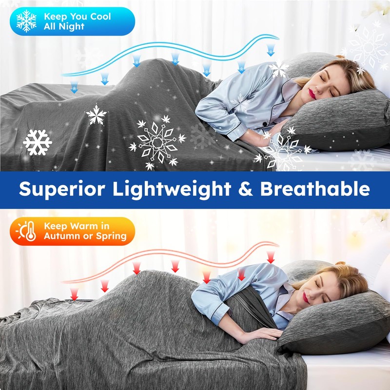 - 【GREAT CHOICE FOR SOMEONE YOU CARE ABOUT】 Enhances cool touch, deep sleep. Get rid of the heat and humidity. Cooling blanket absorbs heat to keep you cool on warm nights, suit for hot sleepers night sweats. Beautifully packaged and easy to carry, our cool blanket are suitable for travel, camping or on the go to enjoy the cool summer anytime, nice summer choice for a loved one.