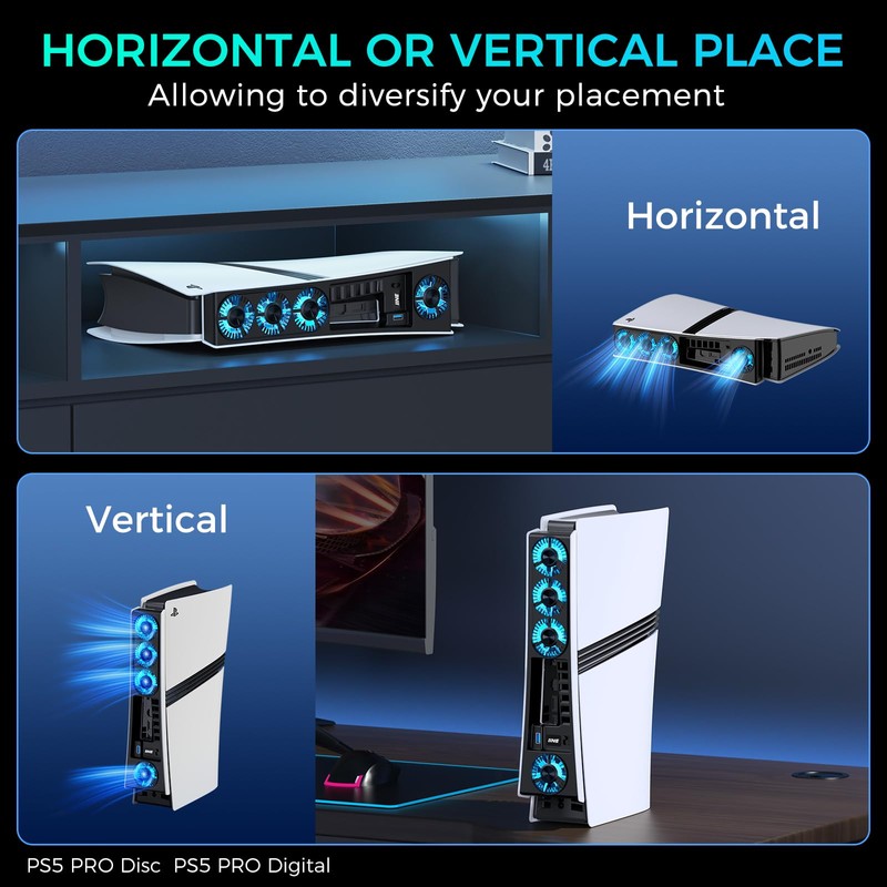 - ❄️ Efficient Cooling System Equipped with 4 high-speed cooling fans, this PS5 Pro cooling fan helps to dissipate heat effectively, preventing overheating and ensuring optimal performance during extended gaming sessions