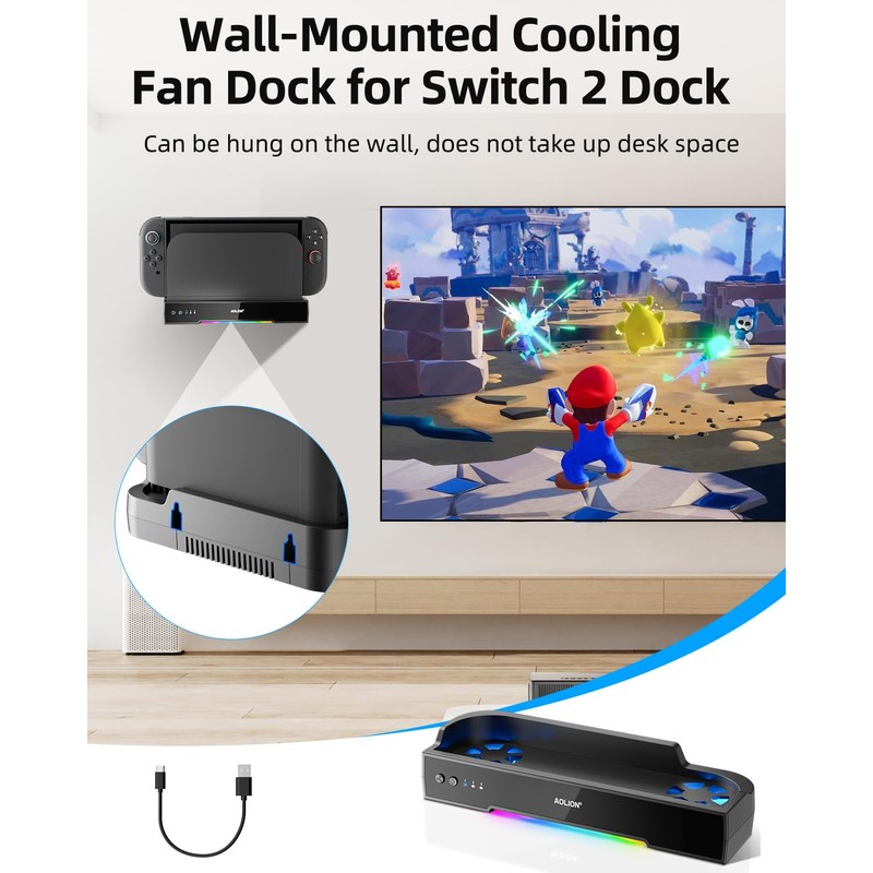 Cooling Fan for Switch 2, Dual-Fan Cooling with Adjustable RGB Lighting, Wall-Mountable Design, Efficient Heat Dissipation, Plug & Play Dock Cooler for Enhanced Console Performance