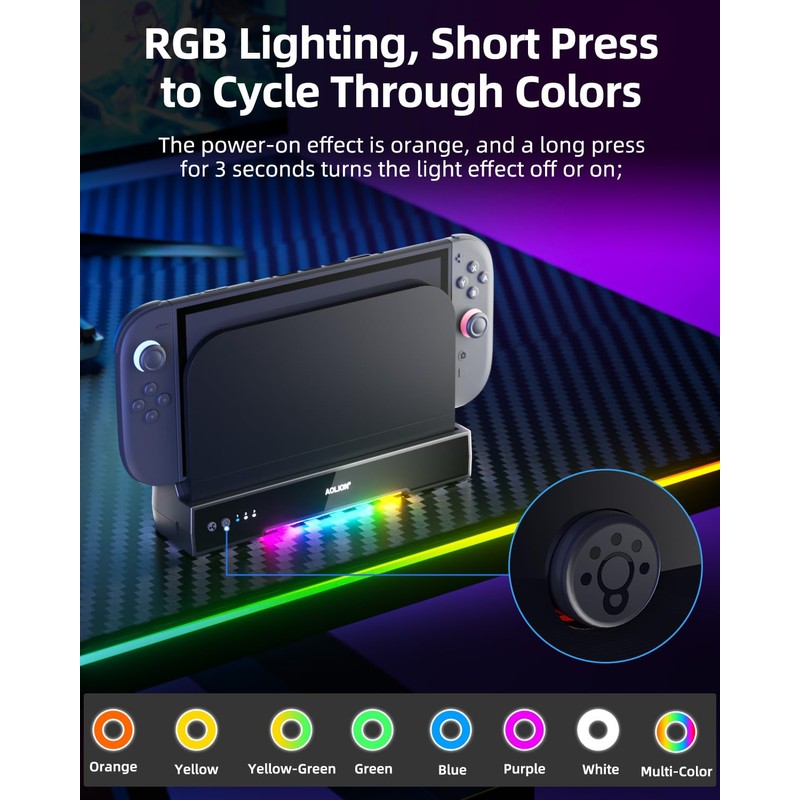• 【Adjustable RGB Lighting】Customize your gaming setup with vibrant RGB lighting effects, adding a stylish touch to your Switch 2 Dock