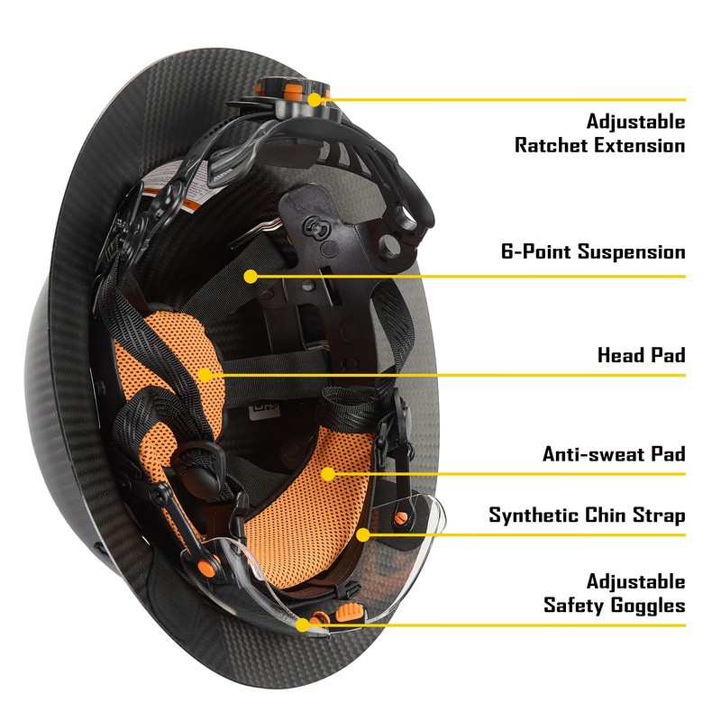 - [Integrated Goggles for Enhanced Safety]: Includes an integrated Goggles to offer comprehensive protection for your eyes. This feature, combined with the stylish carbon fiber design, ensures both safety, functional and a modern aesthetic for professional workers.