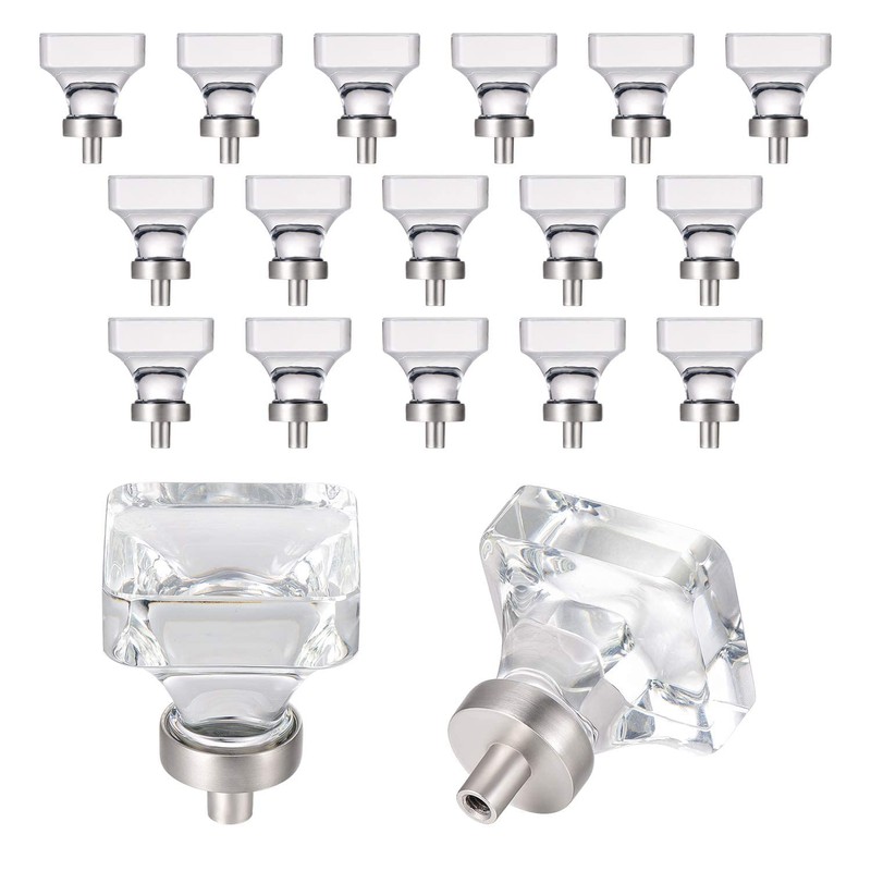 coolnews 16 Pack Glass Cabinet Knobs, Square Crystal Dresser Drawer knobs Kitchen Knobs and Pulls, Brushed Nickel