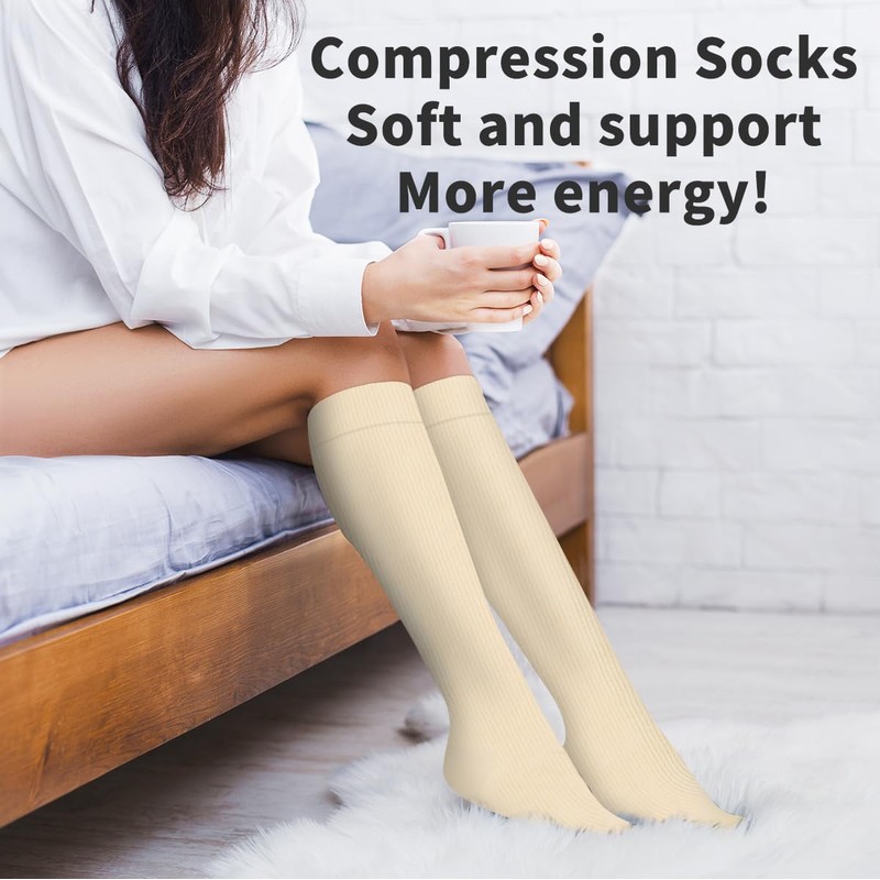 - Ture Graduated Compression-Graduated compression is the most effective form of compression, and works differently than regular compression socks. Work by creating a 'pressure gradient' which helps to push oxygen-poor blood out of the feet and legs, and back to the heart. This improves circulation, boost energy levels, and relieves symptoms such as aches and pains, throbbing, swelling, blood pooling, provides the renewable and sustained energy and allows you to heal in the legs and feet.