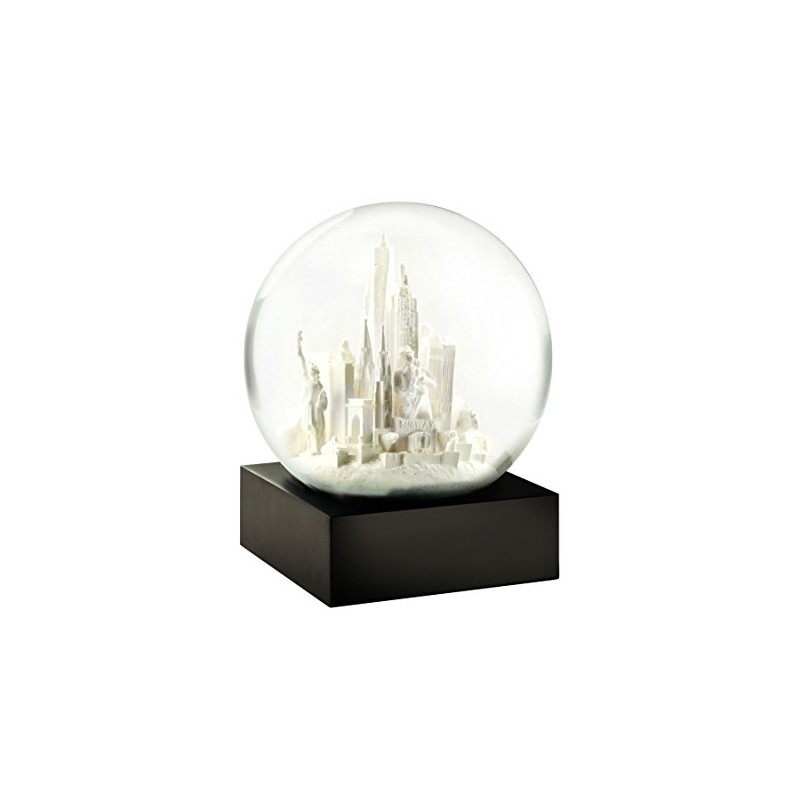 • New York City White features 14 spectacular sights and sounds from the city that never sleeps. Brilliant silver flitter swirls around the scene. Attached resin base is piano black with a matte finish.