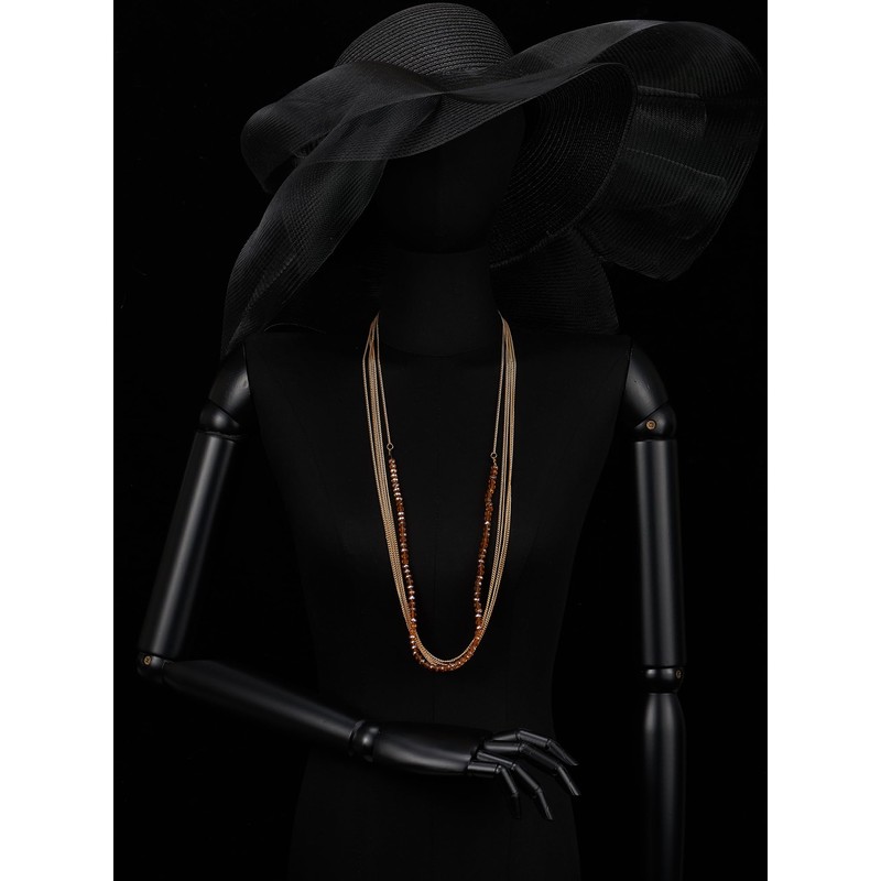 - Gold statement necklace, multi-layer with faceted crystal beads, layered long chain, evening dress party