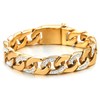 - Men’s Stainless Steel Gold Color Curb Chain Bracelet High Polished with Cubic Zirconia