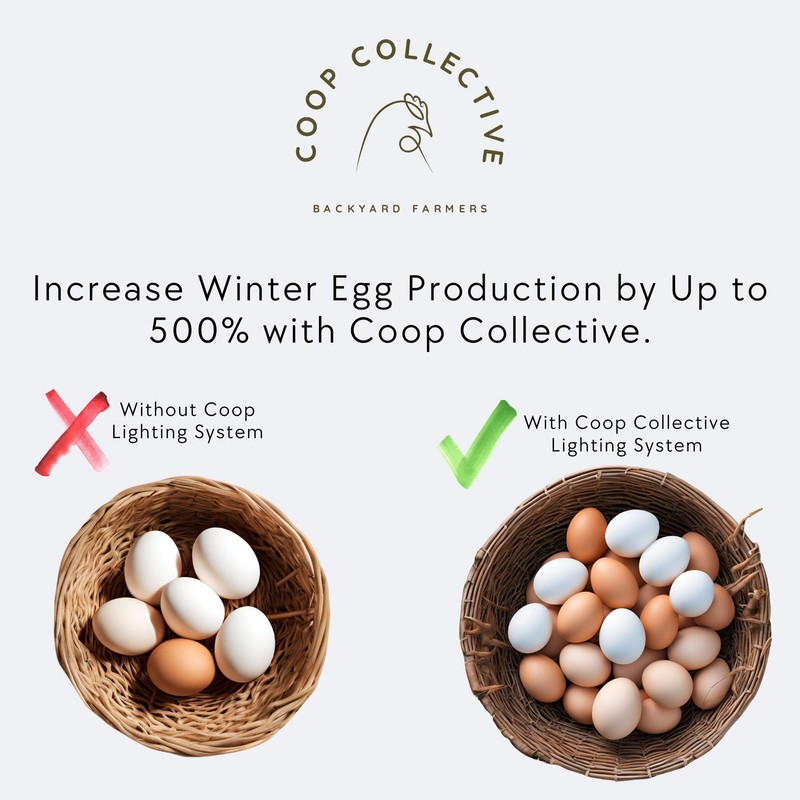 Coop Collective Automatic Full-Spectrum Egg Production Lighting System, Ethically Increase Egg Production, Happy Hen Organic Egg Production, 3 Year Warranty
