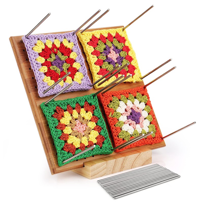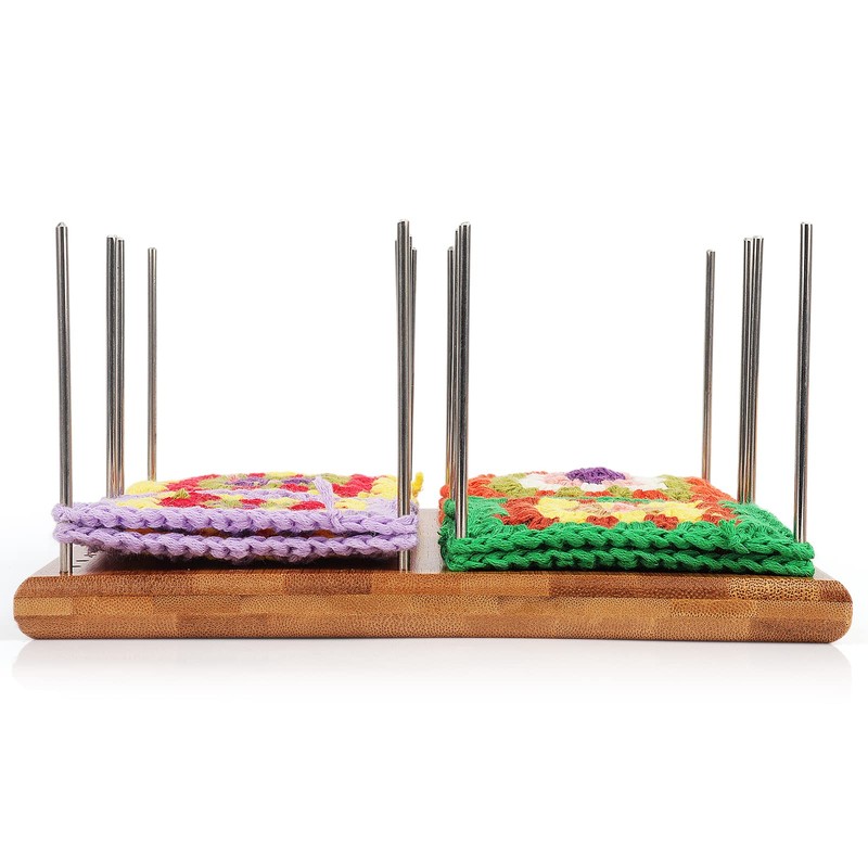 - [A Must Have For Crocheters] Our crochet blocking board is made of high-quality Bamboo in Huangshan, Anhui, the size is 20×20cm(7.8×7.8inch) , and the thickness is 1.5cm/0.6inch, great for granny squares. This crochet blocking board has everything you are looking for-- Small enough to be portable and has the convenience of a stand for smaller spaces