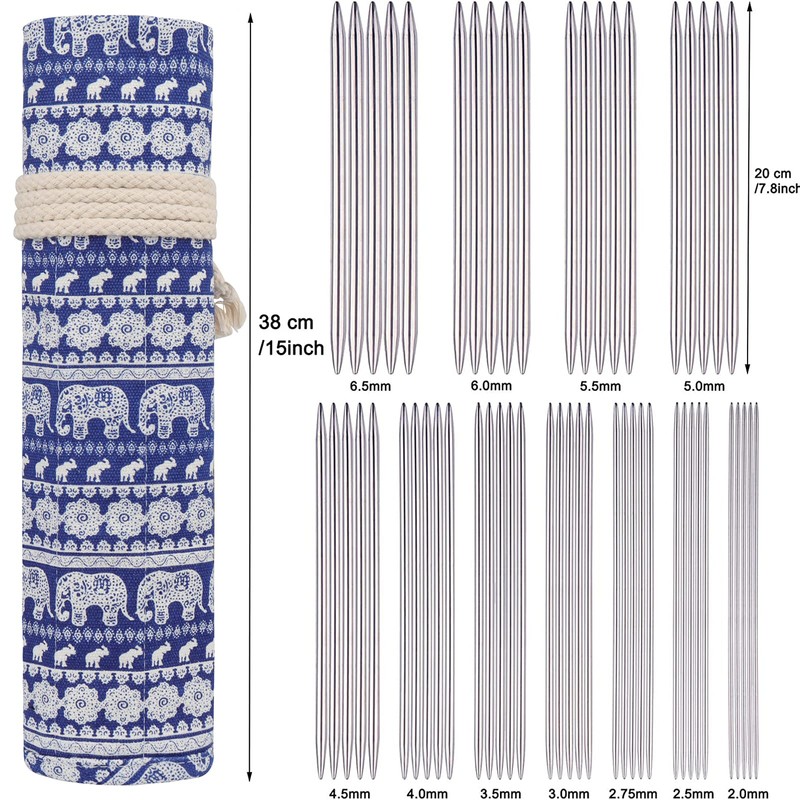 - [Knitting Needle Set with Roll Bag] Crafted from pure cotton, this knitting needle roll provides plenty of storage space for all of your needles and pins. It features a self-tie, all-over flower print and comes with knitting needles in sizes: 2.0mm, 2.5mm, 2.75mm, 3.0mm, 3.5mm, 4.0mm, 4.5mm, 5.0mm, 5.5mm, 6.0mm, 6.5mm