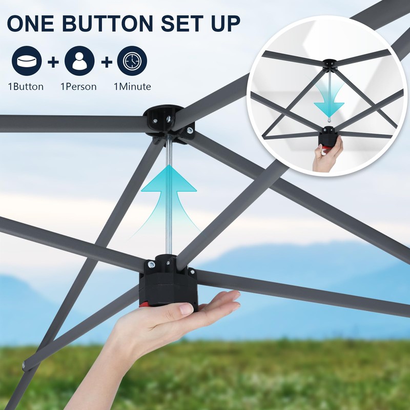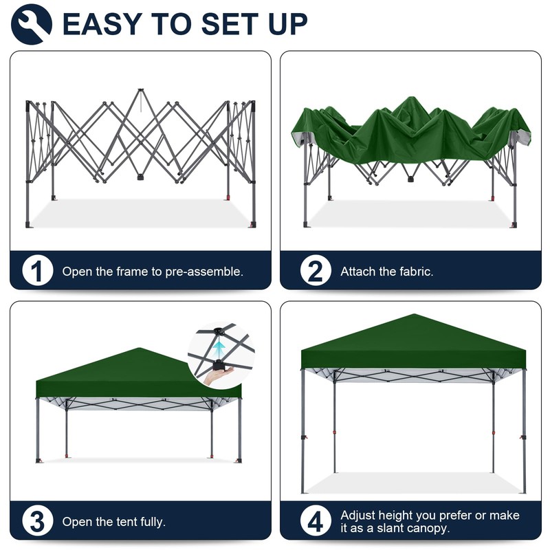 • 【EASY SETUP POP UP CANOPY】The COOSHADE canopy tent equipped with finger-friendly 1 step set-up central lock technique, one person on seconds, no tools needed, requires zero assembly.