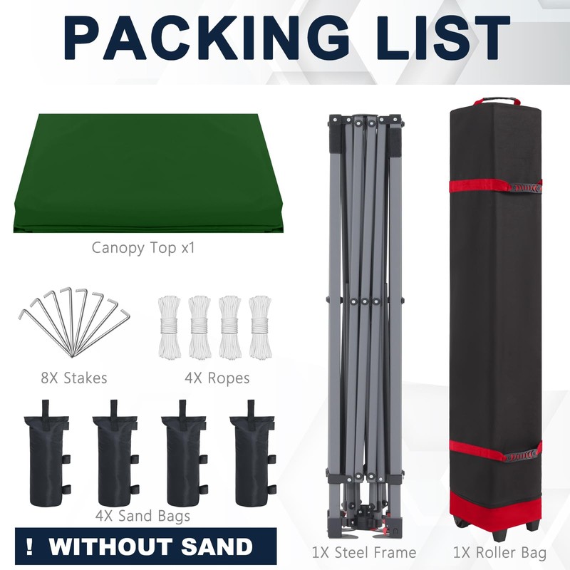 • 【PARTS LIST】Fully assembled powder-coated steel frame, CPAI-84 Flame retardant silver coated canopy top, 600D heavy stock wear resistant roller bag, 4Xsand bags, 8Xstakes and 4Xropes