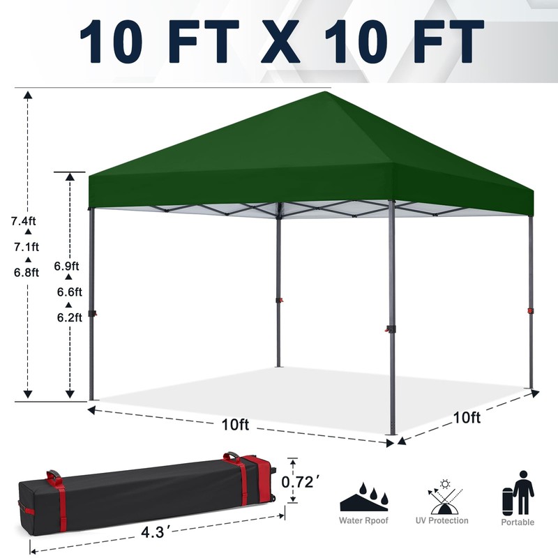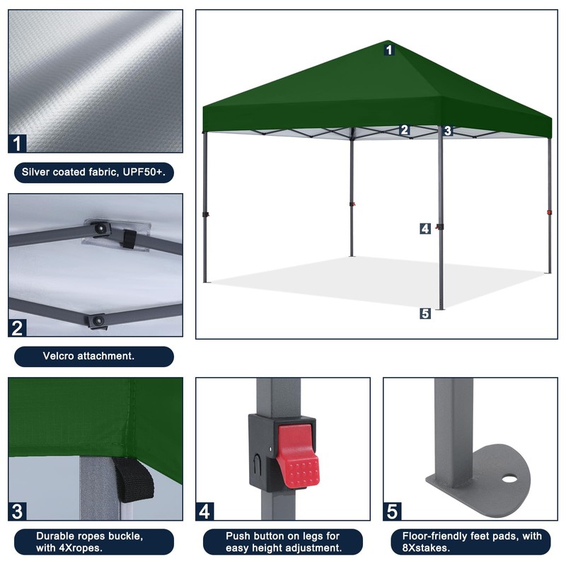 • 【REAL SHADE AND COMPACITY】Thickened 300D silver-plated Oxford fabric provides real 100 sq. ft. of shade, which provides UPF 50+ and block 99% of harmful radiation. Cools and protects 8 to 10 people, perfect for a variety of outdoor events from sports games to farmers' markets.