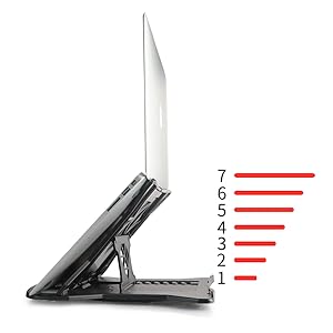 - 7 Heights Choices & 360°Swivel - Adjust height ( 7 - 17cm ) easily . This Notebook stand elevates the screen to eye level for better posture so that provide you an optimal viewing angle. Swivel base allows you to sits at the desired position and share the screen easily.