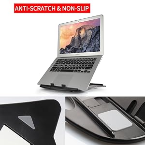 - Anti Slip & Scratch - front Lip prevents laptop from sliding off stand and Rubber mat in the width protects the surface of your notebook while non-slip rubber mat on the bottom protects the desk and ensures stable placement.