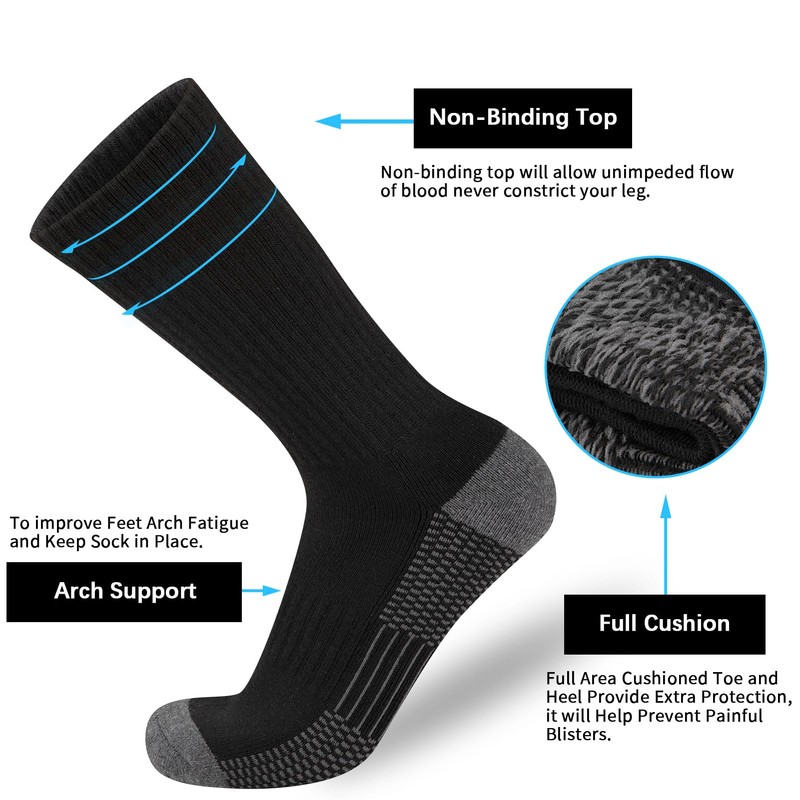 • MOISTURE WICKING: Our mens crew socks made of 80% polyester, 20% spandex. Breathable material, non-binding, and minimizes blisters, appropriate for all days.