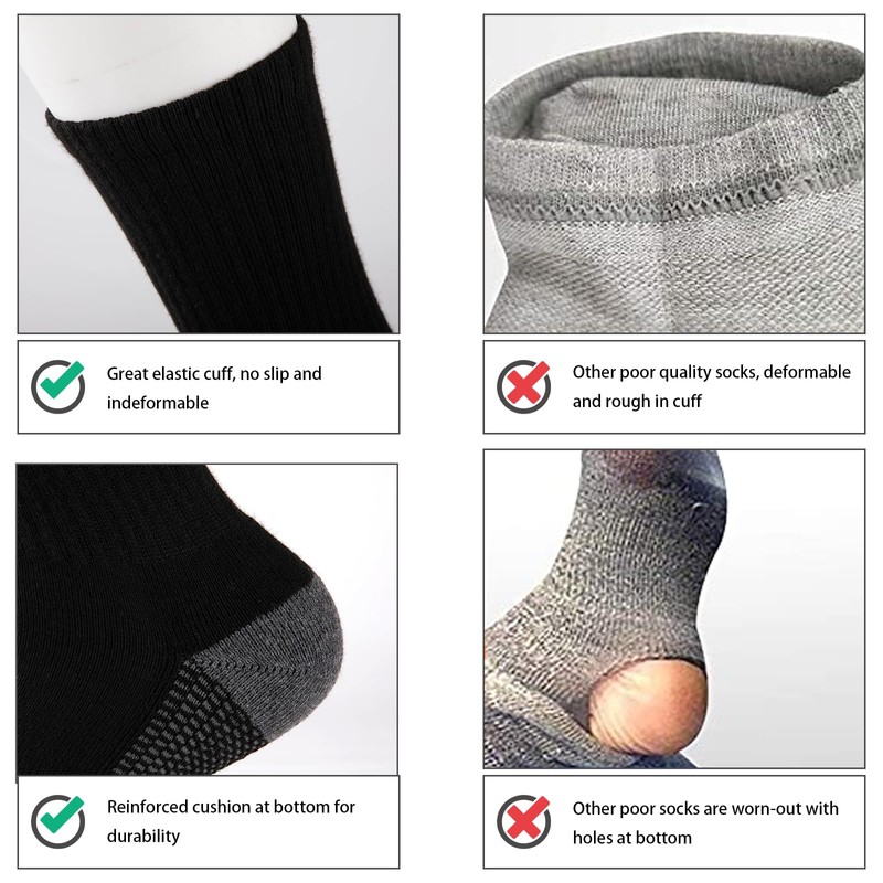 • REINFORCED HEEL&TOE: Best mens athletic socks with reinforced heel and toe for enhanced durability.