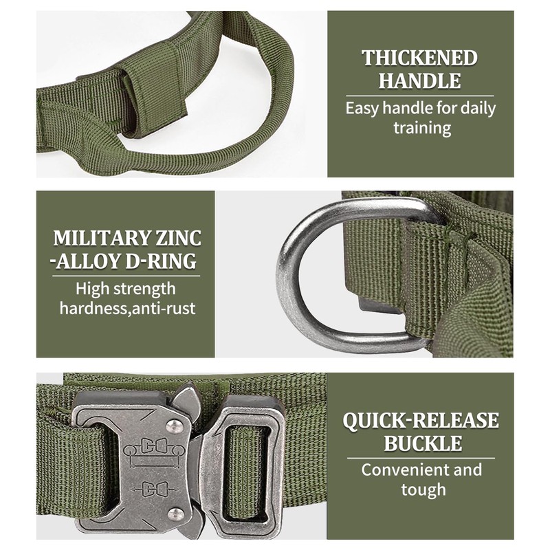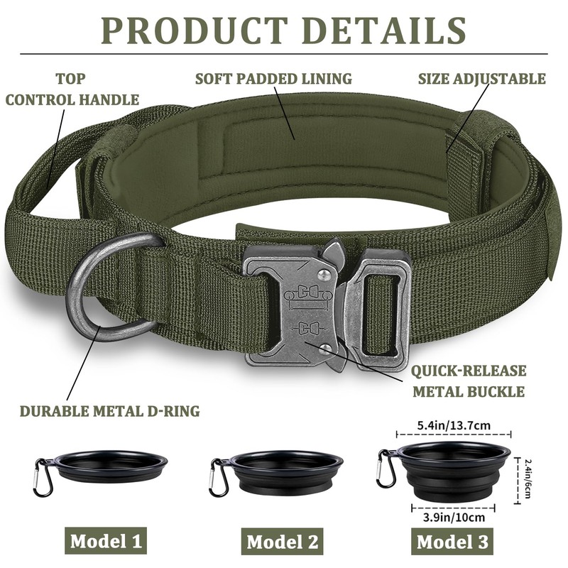 - EMERGENCY HANDLE- The special control handle on this military training nylon dog collar allows you to efficiently control your dog during training, hiking, jogging, hunting, camping, working, running, jumping, traveling, and more.
